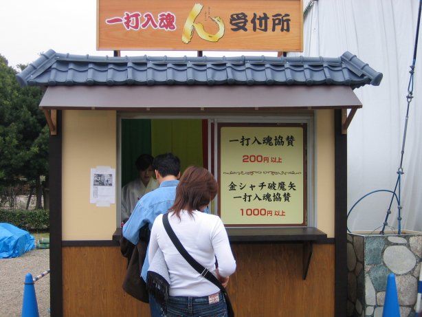 平成17年4月9日(土)から、さくらまつりが開催され、一打入魂 \200以上 としました。また、武者行列が「ん太鼓」前を通りました。