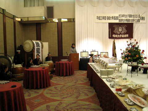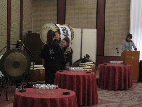 平成24年2月19日(日) 11:00〜 名古屋ガーデンパレスにて、入場時の『出陣』と『山野豊』『曲打ち』『かがり火』『清流』を披露しました。