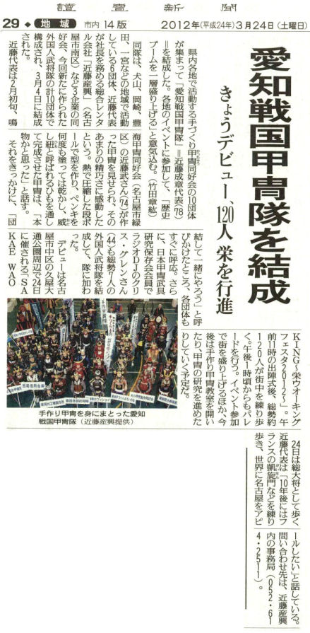 「栄ウォーキングフェスタ」で 愛知戦国甲冑隊 が旗揚げ
