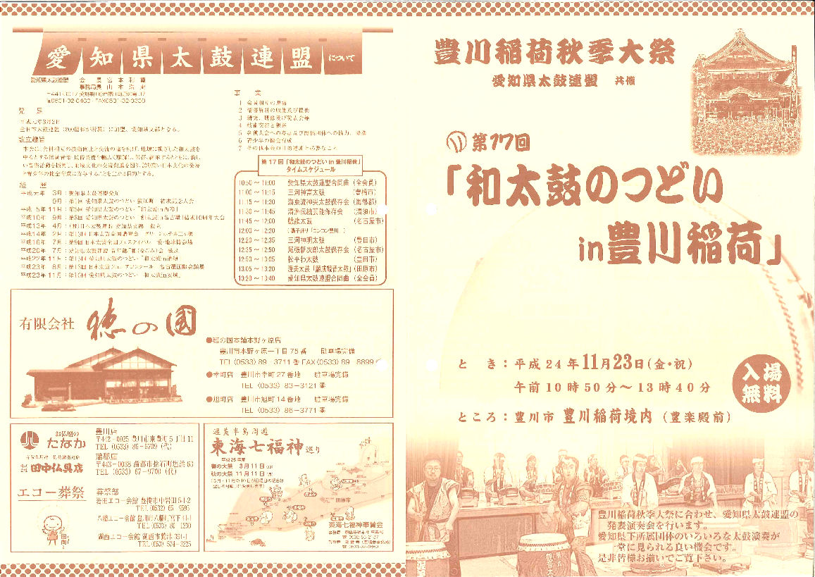 愛知県太鼓連盟「和太鼓のつどい in 豊川稲荷」に参加