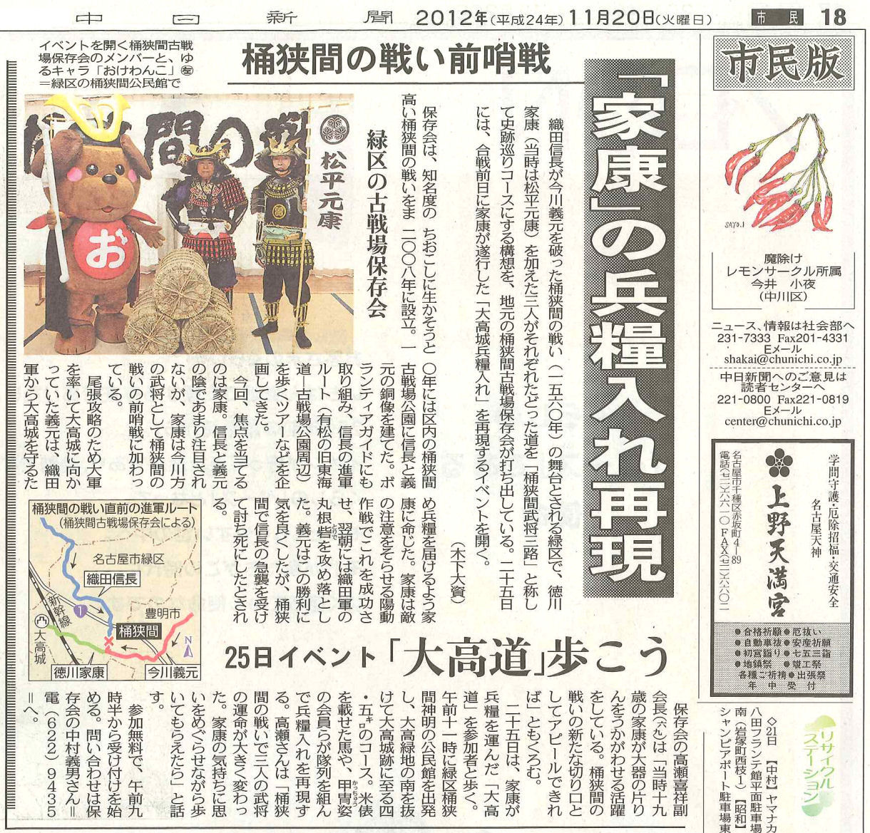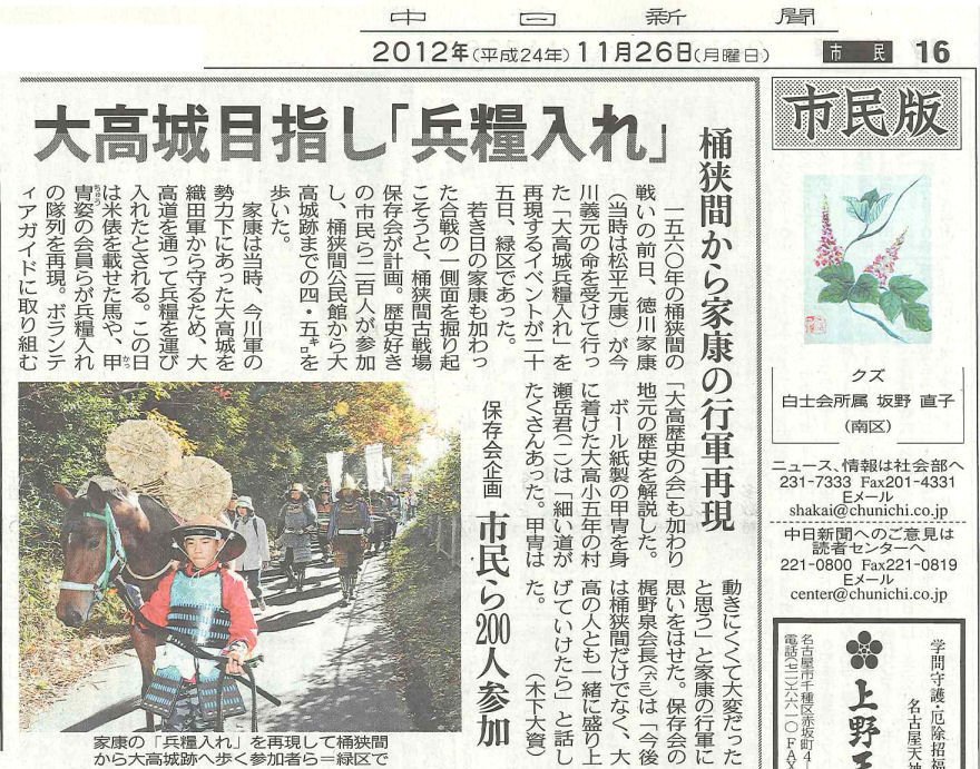 平成24年11月25日(木) 12:30〜 愛知戦国甲冑隊の太鼓隊として、大高緑地公園から大高城址までパレードしました。