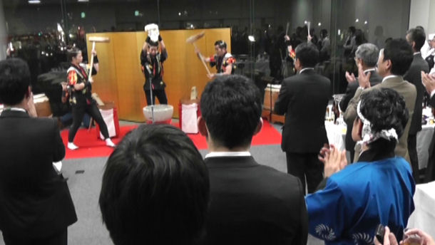 平成24年12月13日(木) 18:00〜 日本経済新聞社中部支社ビルにて『餅つき太鼓』を披露しました。